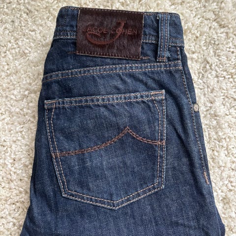 Disse Jacob Cohen buksene er helt nye og ubrukt! 100% autentisk!! De er str 29 som nok passer folk fra 167-177 ish. Jeg er åpen for bud!🤩