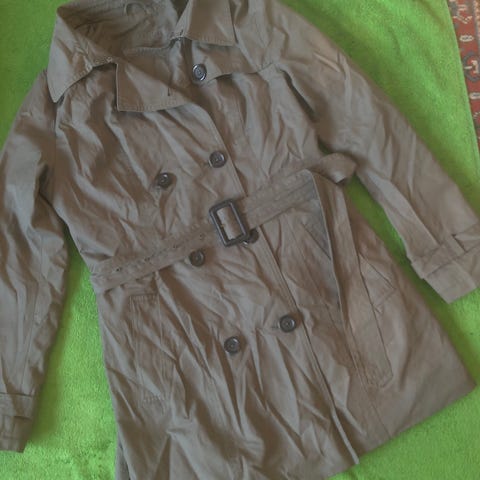 Va Vite trenchcoat jakke for dame i størrelse 40. Jakken er rosa og laget i bomull og polyester Modellen har dobbeltspent knepping foran, krage og belte i livet for regulering av passform. Ermene har justerbare stropper med spenne. Jakken har klassiske trenchcoat-detaljer og passer som ytterjakke i overgangssesonger. Ikke brukt, kun tatt av merkelapp.