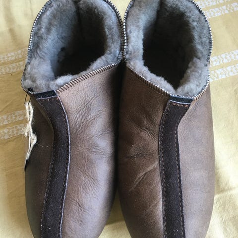 Move Mountains Eskimo Men tøfler i brun farge, størrelse 44. Modell med åpen hæl og mykt, fôret innside for ekstra komfort. Yttermateriale i imitert skinn/semsket look og innside med mykt, pelslignende fôr. Passer som innesko/tøfler til herre i størrelse 44.