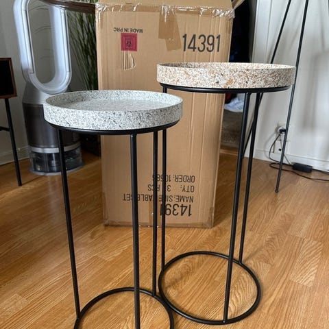 Dette er et bord fra Beliani, merke Bolton. Bordet er ikke montert og heller ikke brukt. Det er enkel montering. Alle deler og monteringsbeskrivelse medfølger. Selges da noen bordben (trekanter i metall) var skadet og jeg fikk levert nytt. Bilder vedlagt. Ny pris 1.549 kroner.