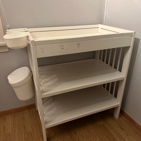 Ikea stellebord med stellemadrass og 3 stelle mate plus 2 oppbevaringskurv