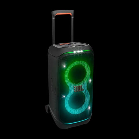 JBL PartyBox Stage 320 høyttaler med integrert lysshow og trillehåndtak.