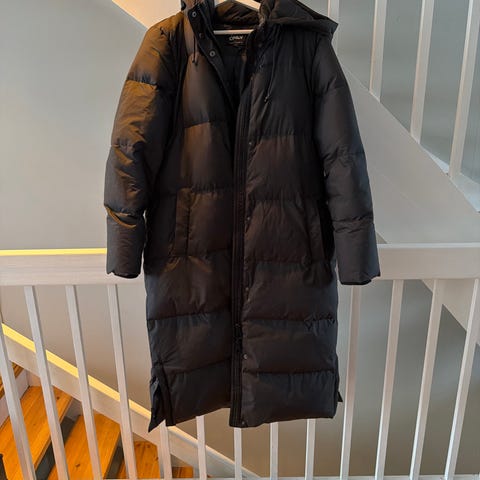 ONLY London Cotton Coat ytterjakke for dame i størrelse S. Jakken er svart og laget i bomullsmateriale. Modellen har hette, glidelås og knappelukking foran, samt flere lommer. Vattert innside med quiltet mønster og mykt fôr øverst ved ryggen. Lengden går ned over hofter for ekstra dekning. Passer som hverdagsjakke og til bruk i kjøligere vær.