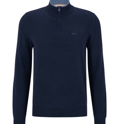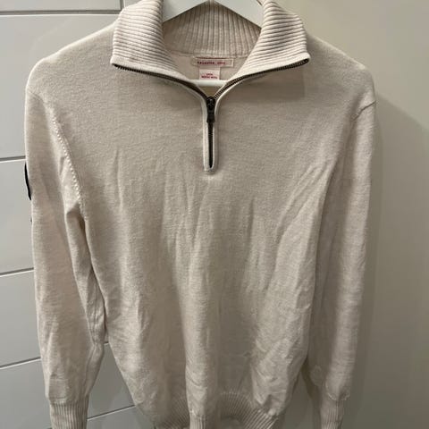 Amundsen genser for herre i størrelse L. Genseren er blå og laget av bomull. Den har høy hals med glidelås og lange ermer. På armen er det påsydde merker/detaljer. Passer til hverdagsbruk og fritidsaktiviteter.
