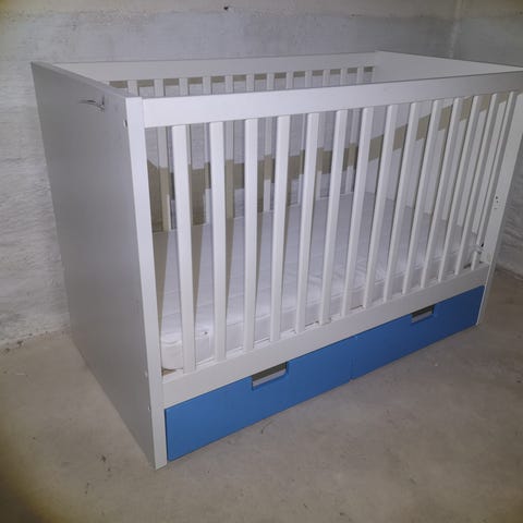Flått barneseng , brukt i et år