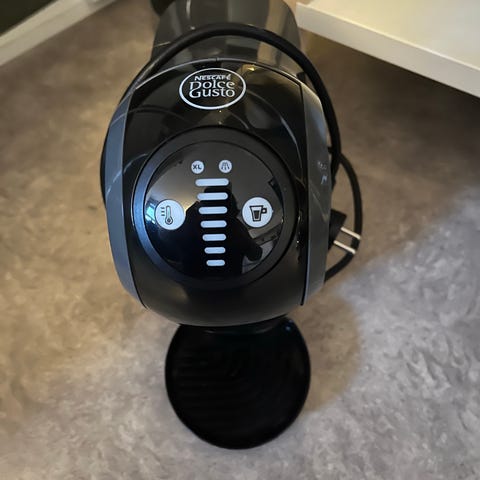 Dolce Gusto kapselkaffemaskin i svart utførelse. Maskinen bruker kapsler fra Dolce Gusto-systemet for å lage kaffe og andre varme drikker. Den har avtakbar vanntank på baksiden og dryppbrett foran. Strømtilkobling med ledning og støpsel på baksiden. Egnet for bruk på kjøkkenbenk eller kontorplass der det er behov for en kompakt kapselkaffemaskin.