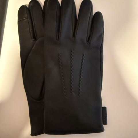 Lange skinnhansker i sort skinn, str L/XL til herre, ubrukt.