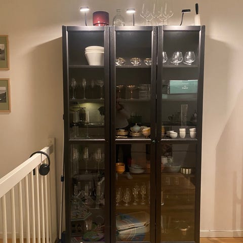Nydelig vitrineskap fra bestå serien fra IKEA selges grunnet flytting. Følger med lys. Gode oppbevaringsmuligheter. Ny pris 5000kr.
