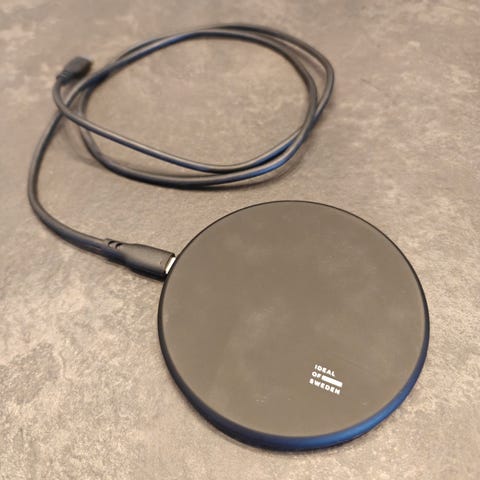 IDEAL OF SWEDEN trådløs lader/ladeplate i rund utforming.