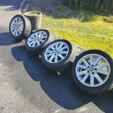 Nesten ubrukte/lite kjørte dekk med aluminiumsfelger selges. Felgene har tidligere stått på en Volkswagen Touran 2007 modell.