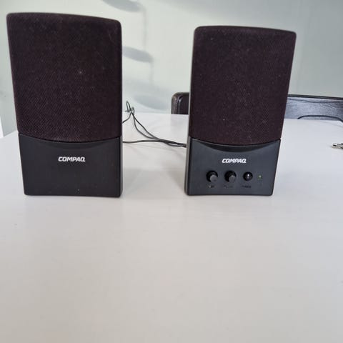 Høyttalerne er i god fysisk stand med normale bruksmerker. De er ikke funksjonstestet nylig, men antas å fungere som de skal. Skulle det vise seg at de ikke fungerer ved mottak, kan kjøper returnere varen. Alle kabler (strøm og lyd) er integrert i enhetene.