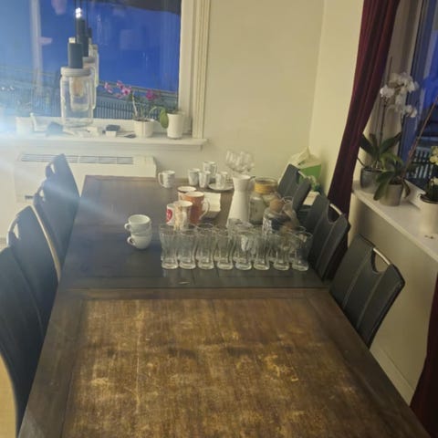 Vi har valgt å selge dette da bordet blir for stort for oss,bruker det nesten ikke. Så vi vil heller få tak i et bord som er mindre