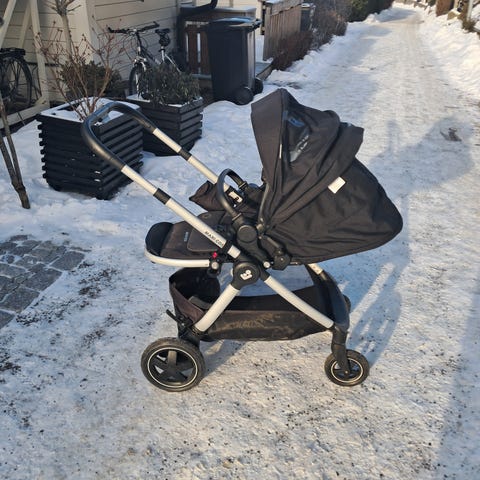Har vært brukt som ekstravogn og oppbevart i bil, derfor pent brukt.