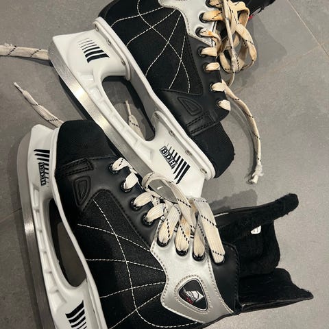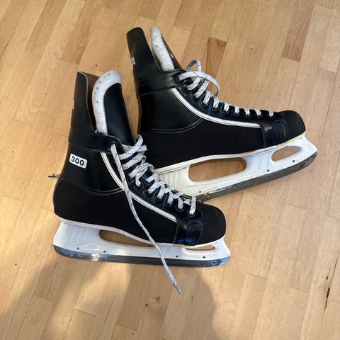 Ishockeyskøyter i størrelse 45 i svart og grå farge.