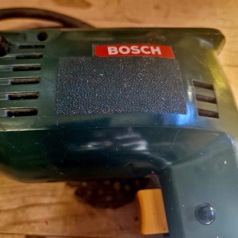 Black & Decker stikksag med 40 mm kapasitet. Driftsspenning 220 V, effekt 330 W og strømforbruk 1,6 A. Slagtall opptil 3200 slag per minutt. Ledningsdrevet modell egnet for kapping av tre og andre materialer innen hobby- og håndverksarbeid. Leveres med løs deksel-/tilbehørsdel som vist på bildene.