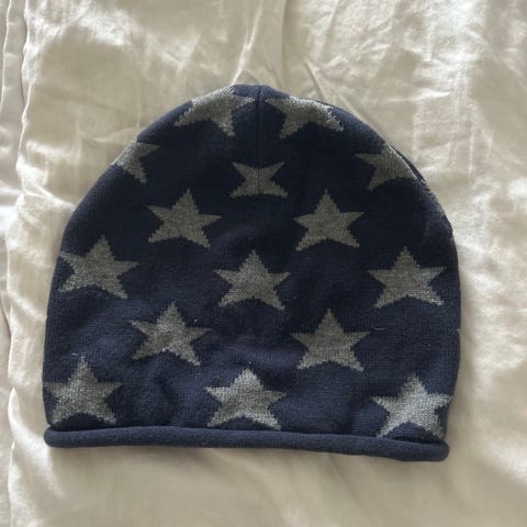 H&M lue for barn i størrelse 134/170, unisex. Luen er i svart polyester med melert grå øvre del, hvite og svarte striper nederst og dusk på toppen. Den har øreklaffer for ekstra dekning og et mykt, fleeceaktig innerstoff for økt komfort. Passer til hverdagsbruk i kjøligere vær.