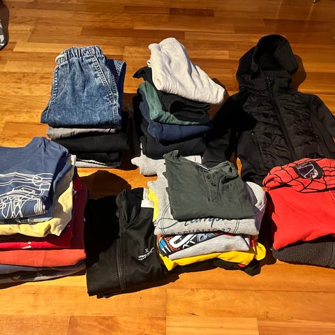 Alt er brukt samtidig som str 110. Kan ikke se noe anmerkninger annet enn litt nupper men klærne er brukt så noe kan være oversett.