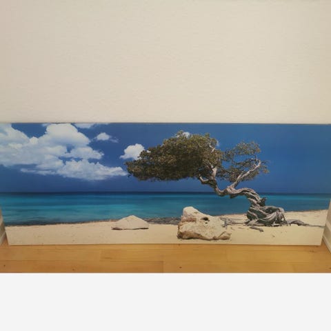 IKEA bilde på lerret med motiv av steiner i vann i dempede, nøytrale farger. Veggbilde egnet til stue, gang, soverom eller kontor. Kan henges på vegg med egnet oppheng etter behov.