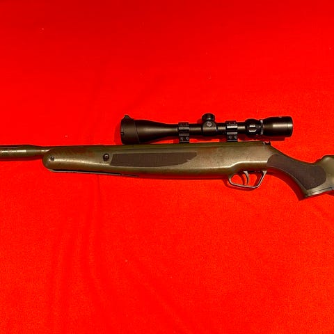 Hei. Jeg har dette luftgeværet som jeg tenker å selge. Det følger med lyddemper, kikkertsikte, fx pumpe, masse kuler og beholder til geværet. Har også 3 ekstra magasiner som jeg legger med. Dette er 5.5 / .22 kaliber.