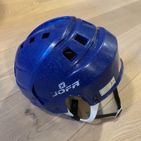 Jofa ishockeyhjelm i rosa farge. Hjelmen har justerbar hakestropp og polstret innside for økt komfort.