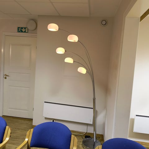 Flotte lamper hvor man justerer «armene» i ønsket posisjon. Pærer følger med.