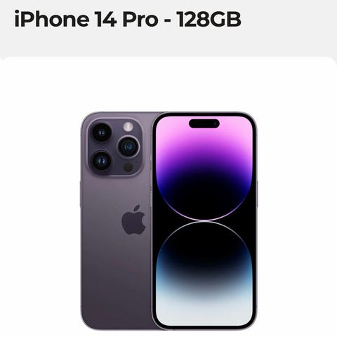 Apple iPhone 14 Pro mobiltelefon med 128 GB lagringsplass. Selges med ladekabel.