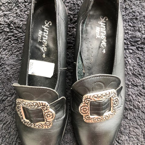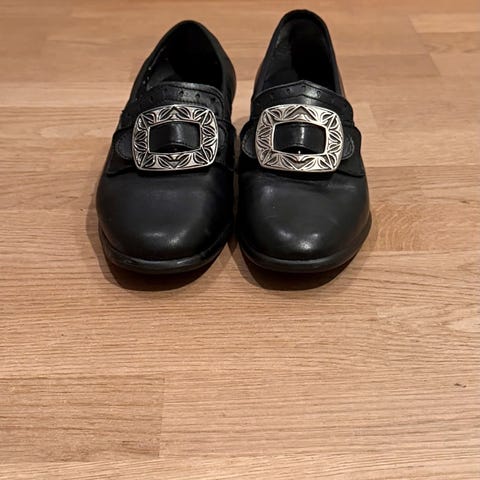 Bunadsko i skinn med hel (ca 5cm). Kjøpte de brukt, men de er for store til meg så selger videre. Har brukt en ekstra såle for å prøve å fylle de mer ut, men det glipper så mulig de passer en litt videre fot. Min fot er smal og 24 cm. (Bruker mest 38,5)
