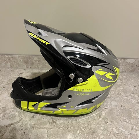 Uvex sykkelhjelm fullface i grå og blå farge, størrelse 57-58cm. Hjelmen har heldekkende hakebeskyttelse og flere ventilasjonsåpninger for lufting. Innvendig polstring og justerbar hakereim med hurtigspenne. Egnet til sykling og aktiviteter der det er behov for ekstra hodebeskyttelse.