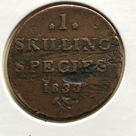 Kvalitet ca 1, men med dårlig blanket som dessverre er vanlig på denne typemynten. Uvanlig årgang (Norges Myntbok 2025: kr 2500 i kv 1)