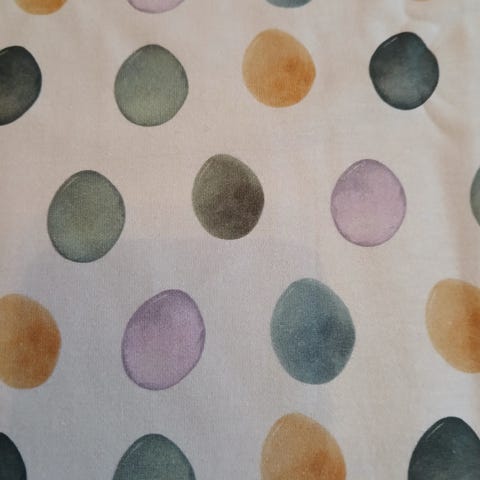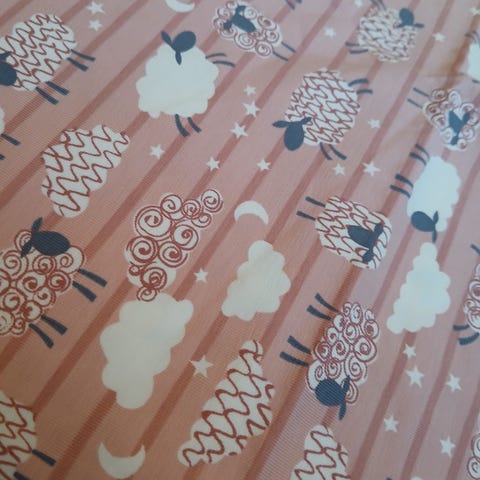 Bomullsjersey 100×150 cm med sauemotiv i blågrønt.