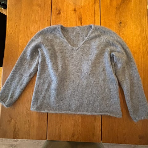 Kay/Day genser for dame i størrelse L. Genseren er i beige ullmateriale med v-hals og lange ermer. Passer som en varm og myk hverdagsgenser, og kan brukes både alene eller over en topp eller skjorte. Nøytral farge som er enkel å kombinere med ulike underdeler.