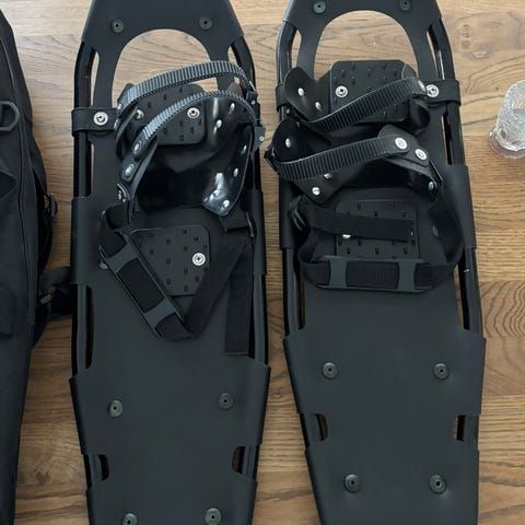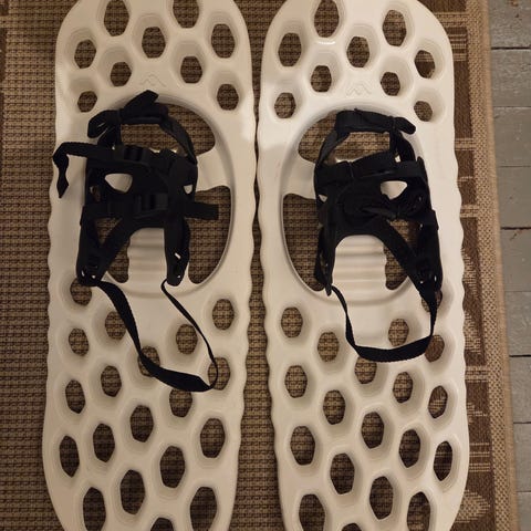 Trugene er i svart med grønne detaljer. Trugene har ramme i metall med plastdekke og remmer for feste av sko eller støvler. Undersiden har metallpigger for bedre feste på hard og isete snø.