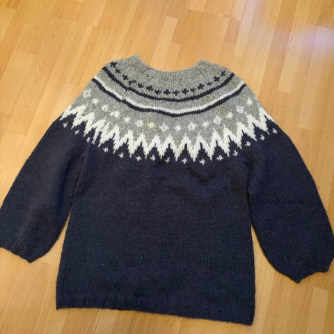 Myk og god hjemmestrikket genser str L (oversize ) eller XL.