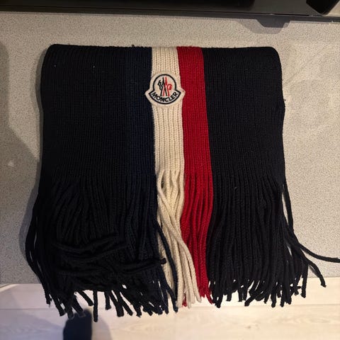 Moncler lue i blå, hvit og rød. Materialet er ull i størrelse one size for herre. Luen har oppbrettkant med stripemønster i hvitt og rødt samt Moncler-logo foran. Egnet til bruk i kjølige temperaturer i hverdagen eller til fritidsaktiviteter. Laget i myk ull for behagelig passform.
