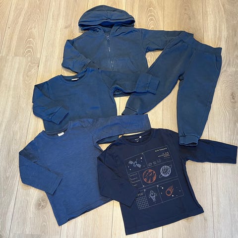 Består av 5 bodyer fra Hust&Claire, 3 joggebukser fra Lindex og etc. 4 gensere, og 1 snekkerbukse fra name it i nydelig farge.