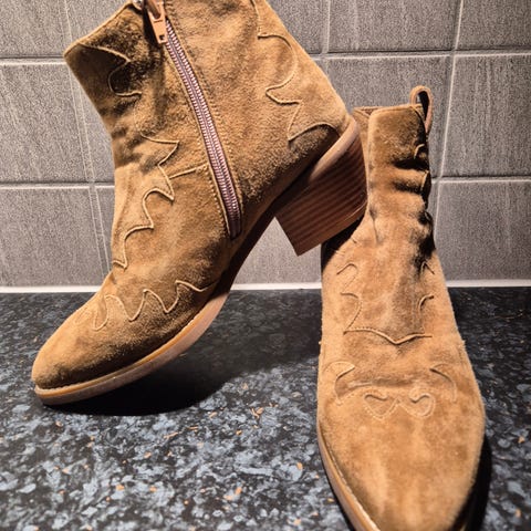 Selger ett par ubrukte semsket ankel støvlettter fra Marco Tozzi i str 39.