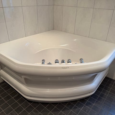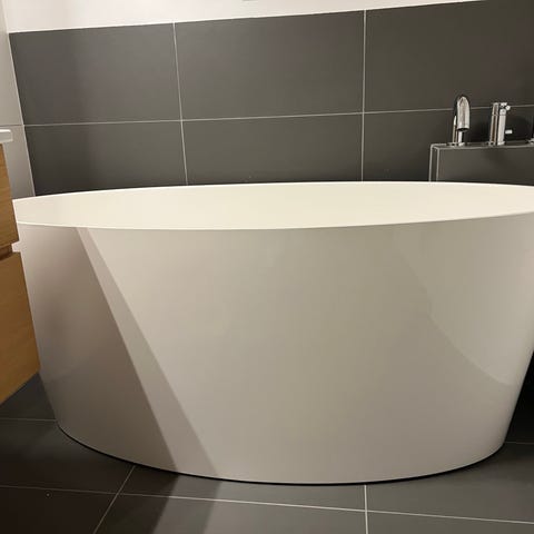 Badekar med integrerte håndtak på begge side og beregnet for innbygging.