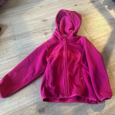 Bergans fleecejakke for jente i størrelse 104. Jakken er rosa og laget i myk fleece. Den har hette, glidelås i front og lommer med glidelås. Egner seg godt som mellomlag eller lett jakke på kjølige dager. Har et par synlige bruksmerker. Ta gjerne kontakt for meg info :)