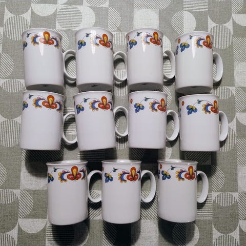 12 asjetter og skåler til kaffekopp.