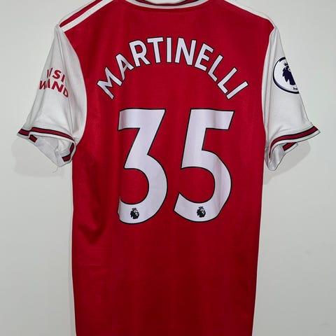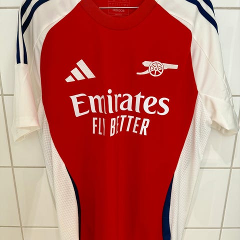Arsenal drakt fra 2001/02 med Bergkamp på ryggen. Størrelse er Medium. Litt skade på sponsor (Dreamcast) og på E-en på ryggen. Mulig å fikse (kanskje hos en sportsbutikk med trykkmaskin? Tørr ikke å gjøre det selv).