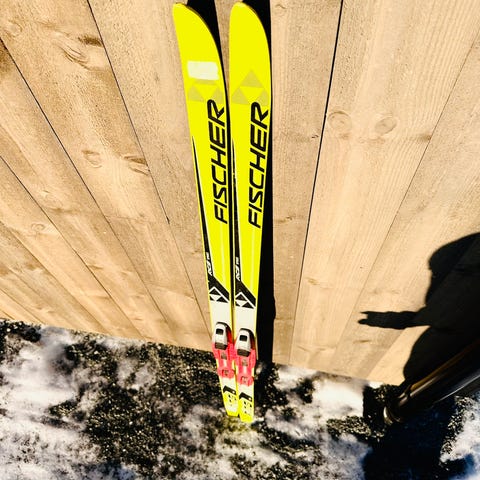 Skiene er i god stand og klare for en ny sesong. Sålene har det klassiske "step"-mønsteret intakt, noe som sikrer at barna kommer seg opp bakkene uten å gli bakover.