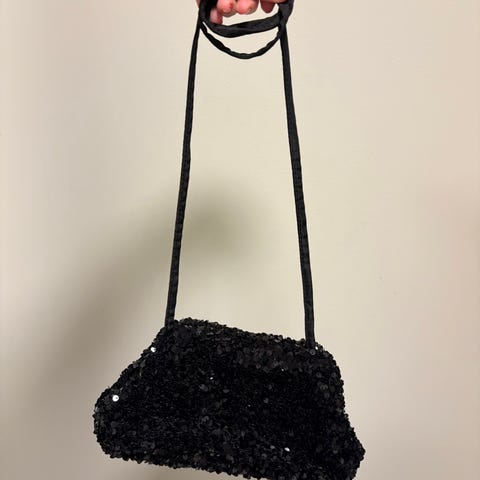 Vintage rumpetaske med paljetter, ubrukt.