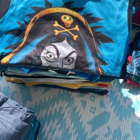 Ryddet i skapet til 5-åringen og har plukket ut gensere, bukser, shorts, t-skjorter (og en onesie) i ulike størrelser - mesteparten er i str 98/104, men noe 92/98 og 110/116 er det også. Har ikke telt over men vil anslå at det er rundt 40 plagg. De aller fleste i god stand. Ingen ullplagg. Må hentes.