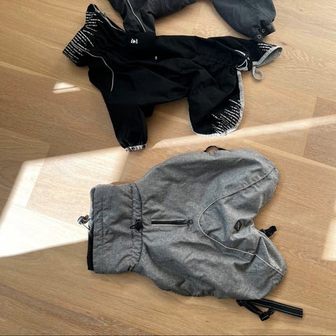 Rukka dressen er ubrukt (prøvd på en gang) resten er brukt en sesong og har ikke noe bruksmerker bare litt pels inni.
