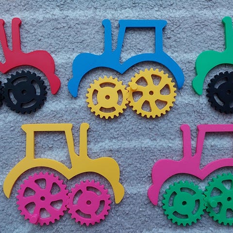 Du kan velge fargen på traktoren og andre leker selv. Du kan velge blant det som er på lager for rask levering (se bilder), eller avtale 3D‑printing i ønsket farge hvis den ikke vises på bildet. Dette kan imidlertid ta 1–2 dager å lage.
