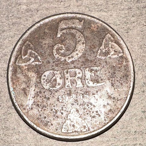 OBSS 5 øre 1945 - HBO KR 1500 ELLER KJØP NÅ KR 2000 (4370 BØ)