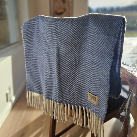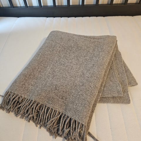 Klippan ullpledd i størrelse 130 x 200 cm. Pleddet er laget av 100 % lammeull og har et vevd mønster i grått og hvitt med frynser i endene. Egner seg som teppe i sofa eller stol, eller som ekstra lag på seng. Kan kun vaskes etter anvisning på merkelappen, beregnet for ullvask/skånsom behandling.