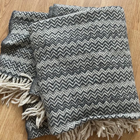 Har valgt "godt brukt", da det er litt nuppete, men i realiteten er dette ikke spesielt mye brukt. Ett teppe i 100% lammeull til en billig penge med andre ord!