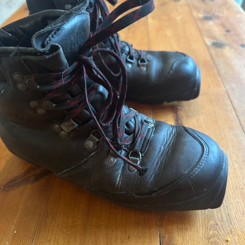 Stødig, varm og god fjellskisko. Lite brukt, men ser at der er litt slitasje (hull) innvendig på hælen. Har aldri fått gnagsår, så trolig ganske ubetydelig for bruken. Passer til 75mm binding. Str. 39