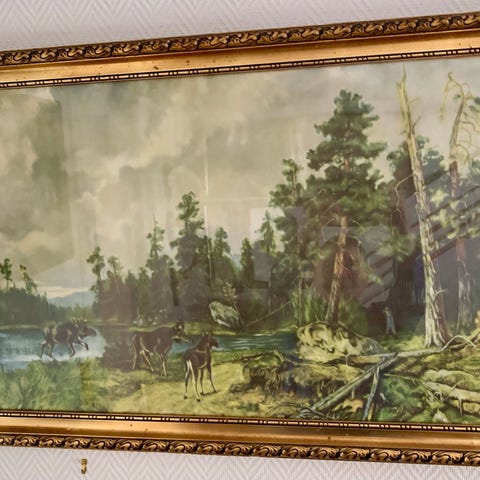 Tiur i et tre fin gammelt trykk med fin ramme. Str. 76. X 46 cm